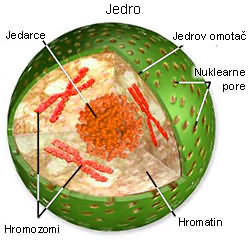 Jedro je ćelijska organela koja ima osnovnu ulogu u razmnožavanju. Obično je loptastog oblika i uglavnom zauzima središnji položaj u ćeliji. Oivičeno je jedrovim omotačem koji ima posebnu građu. Na njemu se nalaze pore. Unutrašnjost jedra ispunjena je jedrovom plazmom u koju je uronjen nasldni materijal - hromatin. U toku deobe ćelije od hromatina nastaju hromozomi. U jedru se takođe nalazi jedarce.